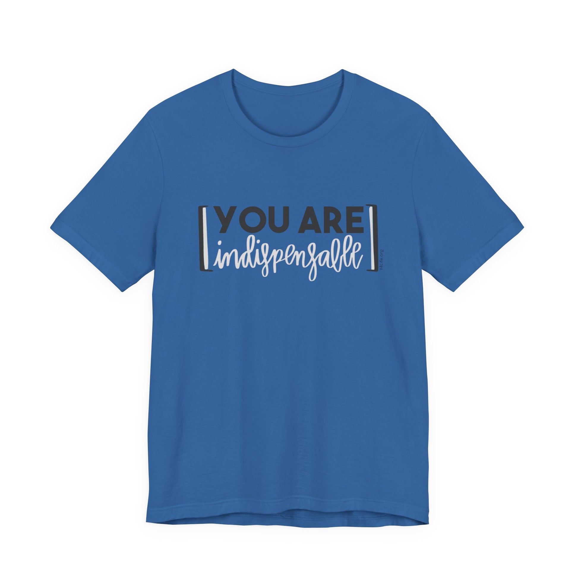 Your life has value because you were created by God, redeemed by Jesus, and called to faith by the Holy Spirit. You matter. You are a gift to the world. You are indispensable. Share with others that they are indispensable too with this Y4Life classic t-shirt!